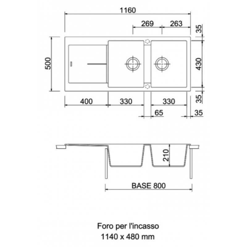 | Размер мойки | 1160x500 мм |