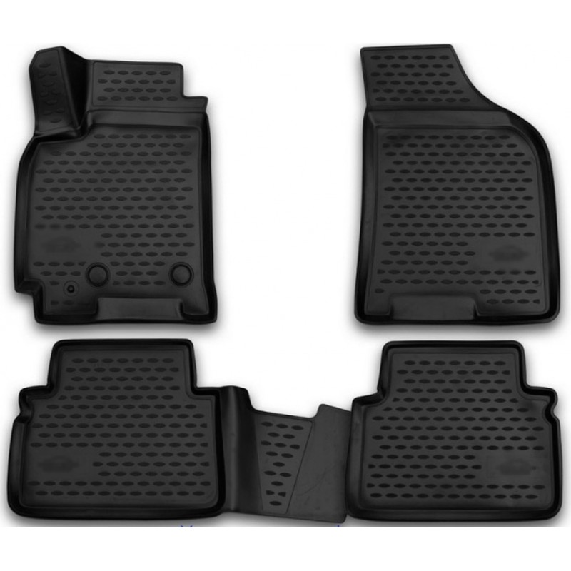 Коврики устойчивы к истиранию. Благодаря высоким бортикам, надежно защищают внутреннюю обивку салона от грязи и снега. Передняя часть водительского коврика уходит под педаль акселератора, что исключает нештатное зацепление педали.