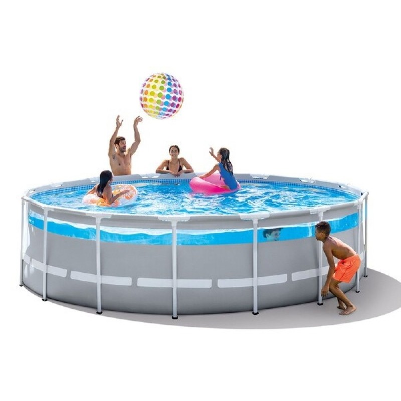 Новый съемный бассейн Prism Frame Clearview от Intex отличается трубчатой стальной конструкцией.Бассейн диаметром 427 см и высотой 107 см вмещает 12 700 литров воды и может вместить 6 человек . Помимо сверхпрочной конструкции, тройной слой сверхпрочного материала делает бассейн прочным и способным противостоять давлению и деформации.