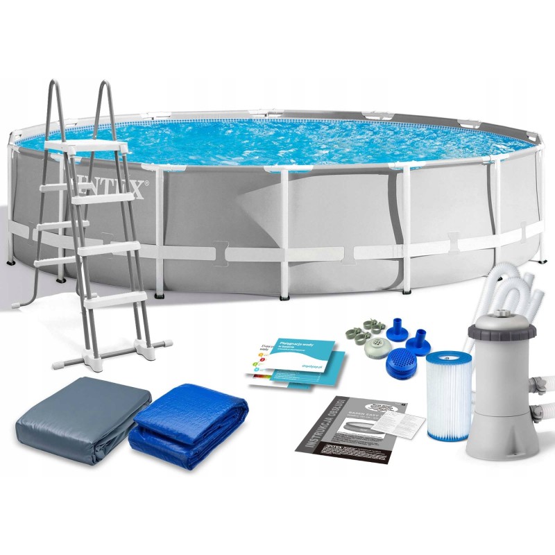 Сборный каркасный бассейн серии Intex Prism Frame (DELUXE комплектация) с фильтр-насосом, лестницей, тентом и подстилкой.Стенки бассейна сделаны из трех отдельных особо прочных слоев: два слоя плотного винила и один — полиэстр для особой прочности. Поддержанию формы бассейна Prism Frame Pool способствует лента из полипропилена, «опоясывающая» весь бассейн. Также прочность бассейна Prism Frame Pool обуславливается его стальным каркасом, благодаря которому бассейн выдерживает большие нагрузки, в нем одновременно могут купаться несколько человек.Не требует подготовки грунта, песка и т.п., все, что нужно, это плоская, горизонтальная площадка.Процесс сборки бассейна до наполнения водой занимает 45-60 минут.Удобный сливной клапан присоединяется к садовому шлангу. Таким образом, воду можно слить в любое удобное место. Не нуждается в подготовке грунта, насыпке песка и т.п.