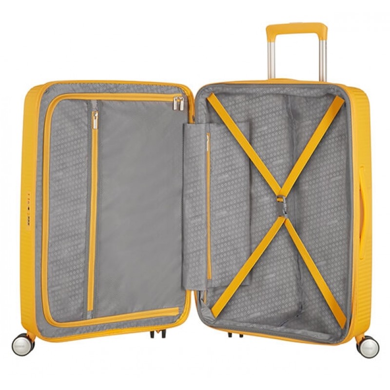Ультрамодный, навеянный мировым ритмом, дизайн чемодана American Tourister Soundbox Spinner из супер-гибкого и надежного полипропилена новейшего поколения Вы узнаете по незаурядному дизайну в виде винтажной виниловой пластинки. Этот удостоенная наград расширяемый чемоданчик для ручной клади обладает одним из наших самых впечатляющих дизайнов чемоданов на сегодняшний день. Игривый круговой орнамент с контрастными матовыми и блестящими поверхностями будет неизменно вызвать переполох во время Ваших путешествий. Проходит по требованиям к размерам ручной клади различных авиакомпаний, в том числе Ryanair, easyJet! Возможность дополнительного расширения позволит упаковать самые экзотические сувениры со всех концов света. А цветовая палитра дополнена новыми яркими летними цветами!