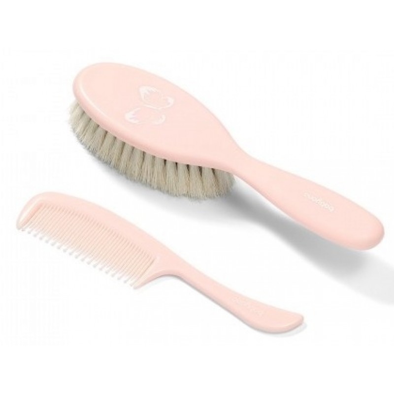 Супермягкая щётка для волос с мягким натуральным волосом для новорожденных. Отлично массирует кожу ребёнка и – благодаря своим антистатическим свойствам – не электризует волосы. Набор включает расчёску с округленными зубьями, не раздражающими кожу ребёнка.