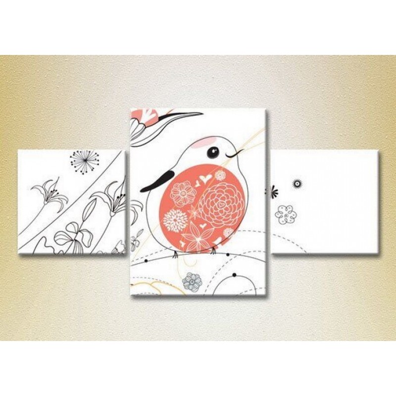 Картина Magic Color Triptych Fat Bird and Flowers (2229744)