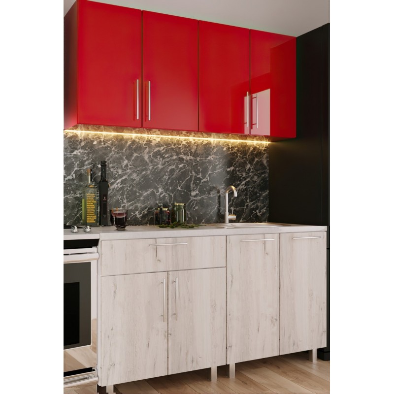 Кухонный гарнитур Bafimob Mini (High Gloss) 1.4m Red/Carton