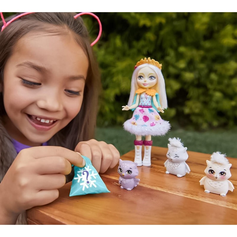 Самая ожидаемая новинка осени 2020! Новый набор с семьёй Энчантималс - милых героев, у которых особая связь с их лучшими друзьями - животными.Игровой набор из коллекции Enchantimals Снежная долина (Snowy Valley) включает куклу Совуни (Odele Owl) и 3 фигурки совят Круиз, Вояж и Патрол (Cruise, Voyage & Patrol) разных оттенков.