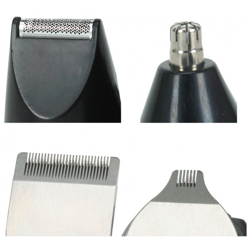 | Комплектация | Триммер для удаления волос в носу и ушах , триммер для подравнивания бороды и бакенбард (3 сменных насадки) , бритвенная насадка , 4 cменные насадки для стрижки |