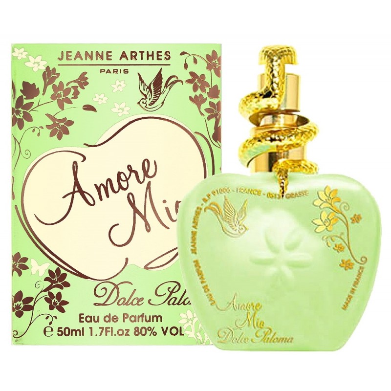 Jeanne Arthes Amore Mio Dolce Paloma — парфюмерная вода для женщин, выпущенная во Франции. Ее можно купить с 2014 года. Бодрящие нотки мандарина, апельсина, пряного бергамота и красных ягод переплетаются с цветочными аккордами нежного жасмина, фиалки, цикламена, сладкой розы, кардамона и черной смородины. Шлейф Жанн Артес Аморе Мио Дольче Палома соткан из смолянистого сандала, ванили, мускуса, амбры и кедра.