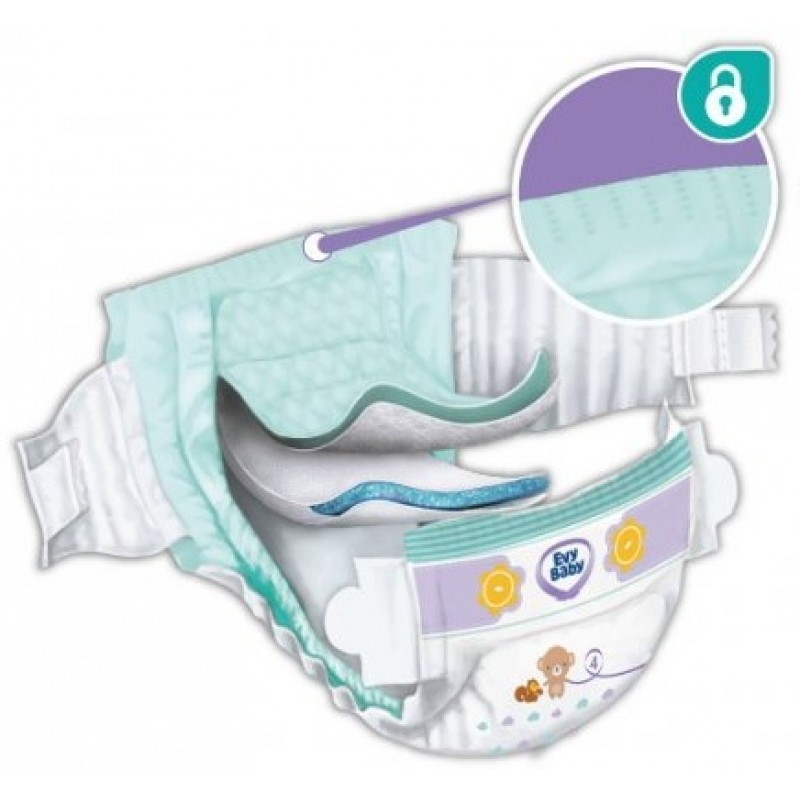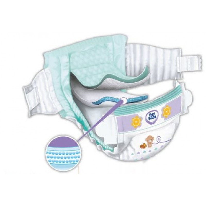 Новые подгузники Evy Baby – это система полного ухода за нежной кожей малыша. Благодаря специальным супервпитывающим подушечкам подгузники Evy Baby обеспечивают быстрое впитывание и равномерное распределение жидкости внутри подгузника. Новая защитная система от протеканий блокирует жидкость внутри подгузника и обеспечивает экстра сухость. Благодаря специальной структуре подгузников и использованию дышащих материалов они прекрасно сидят и оберегают кожу вашего малыша.| Вес малыша | 7-18 кг |