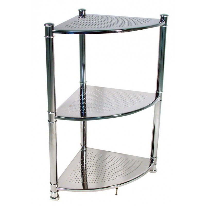 Угловая полка TESTRUTизготовлена из хромированной стали, 3 яруса. Она подходит для использования в помещениях с повышенной влажностью. Данная модель имеет хорошо продуманный размер, благодаря чему на ней удобно разместятся всеаксессуары. Крепление навесное.| Количество полок | 3 |