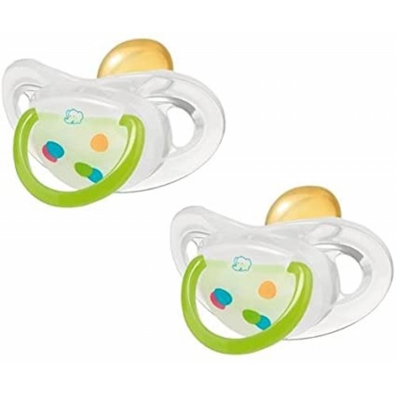 Пустышка ночная Bebe Confort идеальный вариант для спокойного сна малыша и удобства мамы. Уникальная форма пустышки, повторяющая форму неба снижает давление на десны и молочные зубки. Комплект из двух латекных пустышек.| Минимальный возраст | 0 мес |