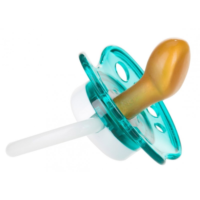 Пустышка Toys изготовлена из высококачественного латекса. Оборудован ортодонтическим соском. Благодаря отверстиям в защитном кожухе соска-пустышка не раздражает чувствительный рот ребенка. Обладает светящуйся в темноте ручкой, которая помогает находить пустышку ночью. BPA бесплатно. Доступна в нескольких цветах.
