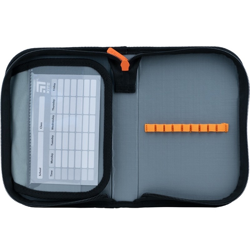 1 отделение с 1 отворотом – чтобы все необходимое всегда было под рукой;резинки для фиксации канцелярских принадлежностей – для идеального порядка внутри пенала;тканевая окантовка обеспечивает защиту кромки;прочные материалы и надежная фурнитура;картонная вкладка с полем для расписания – чтобы оно всегда был перед глазами;материал снаружи – прочный износостойкий полиэстер;внутренняя отделка – ПВХ.
