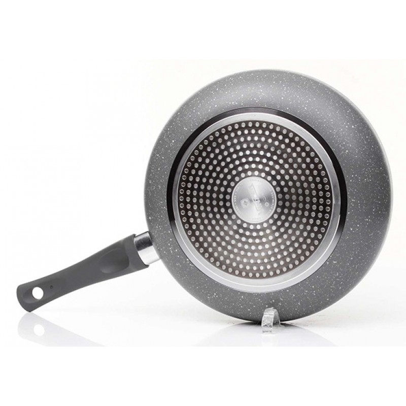Эта сковорода имеет трехслойное антипригарное покрытие толщиной 30 микрон с добавлением гранитной крошки, которое обладает высокой степенью твердости, высоким уровнем устойчивости к царапинам и износостойкостью. Благодаря этому вы сможете готовить полезную и вкусную еду на сковороде Vinzer Stone Induction Line без масла и жира. И главное, моется она легко, как вручную так и в посудомоечной машине.А стальной индукционный антидеформационный диск на дне сковороды оптимизирует распределение тепла, что позволяет равномерно прожаривать продукты по всей поверхности дна.