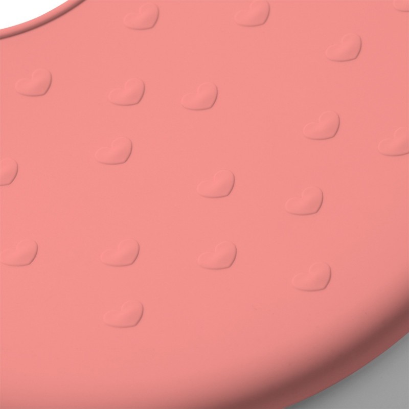 Нагрудник имеет возможность регулировки. Он имеет легко застегивающиеся декоративные застежки в форме сердца.Это делает его универсальным и удобным. Он был изготовлен в 100% из легкого силикона.