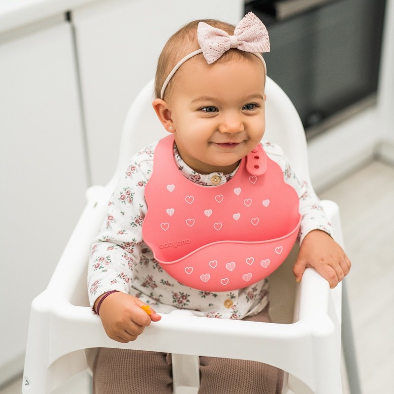Мягкий и нежный нагрудник эффективно защитит одежду вашего ребенка от загрязнения во время еды. У него есть практичный карман, который удерживает остатки пищи от падения. Нагрудник был изготовлен из мягкого, легкого и безопасного пластика. Его легко содержать в чистоте, можно мыть в посудомоечной машине. Он гибкий, что позволяет удобно складывать его в маленький кубик, идеально подходящий для размещения в сумке для мамы.