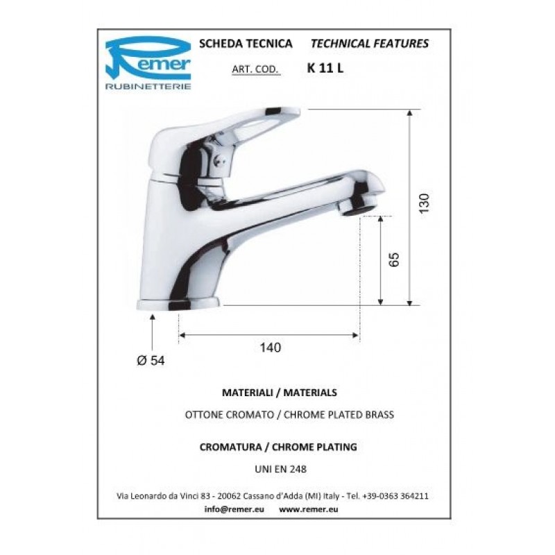 Смеситель для умывальника Remer Kiss 11L2