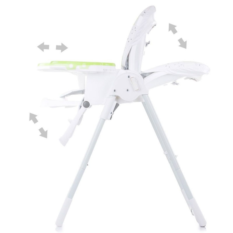 Сиденье регулируется по высоте - 6 положений.Регулируемая подножка - 3 положения.Компактный для хранения после складывания.Стульчик для кормления изготовлен в соответствии с европейским стандартом EN14988.