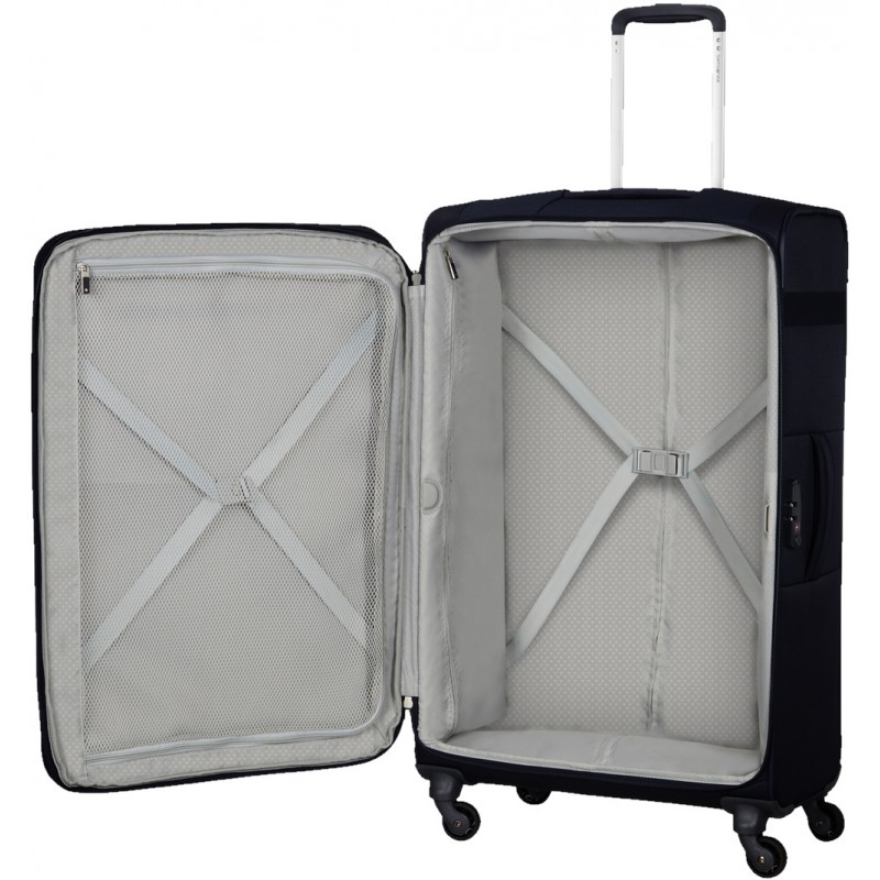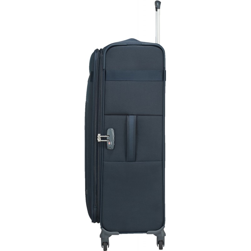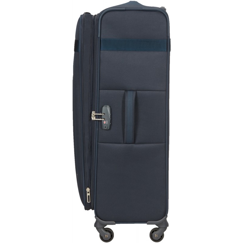 Чемодан на четырех колесах с увеличением объема Samsonite Citybeat Spinnerвдохновлен ритмами современного города. Он непременно придется по душе тем путешественникам, которые предпочитают классический стиль в сочетании с широкой функциональностью и умеренной ценой. Дизайн этого легкого тканевого четырехколесного чемодана тщательно продуман: все металлические элементы и светлые акценты отлично гармонируют со всеми цветовыми гаммами, представленными в коллекции.